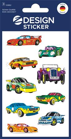 Matrica, papír, 3 ív, 76x120 mm, AVERY ZWECKFORM, "Z-Design No.53882", színes autók