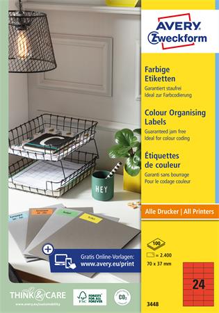 KezdőlapIrodaszerekIrodai papíráruEtikettekEtikett, 70x37 mm, színes, AVERY ZWECKFORM, piros, 2400 etikett/csomag